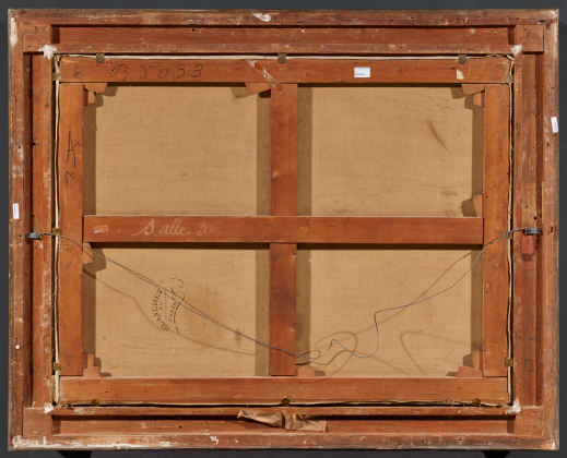 Auf dem Rahmen Ausstellungsetikett Exposition Universelle de San-Francisco mit Angabe des Titels.