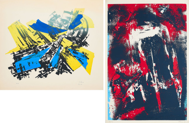 und nummeriert. Ex. 30/30. b) Ohne Titel. 1957. Farblithografie auf Velin. 52 x 64cm (65 x