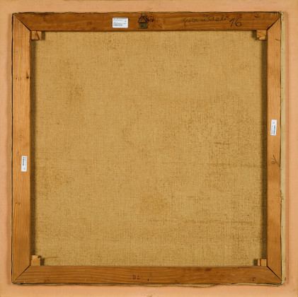 Minimale Staubablagerungen. Vereinzelt leichte Verschmutzungen. Leinwand wirft minimale Falten in den Ecken. Ansonsten guter Zustand. Im Rahmen beschrieben.