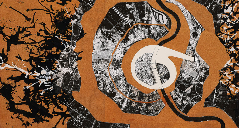 Technik: Mischtechnik, collagiert auf braunem Papier.
