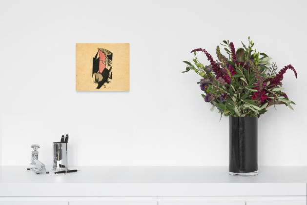 Maße: Japan: 14 x 16cm; Velin: 30 x 20,5cm.