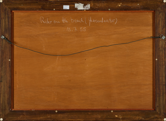 Bezeichnung: Signiert unten rechts: jae (Künstlersignet). Sowie betitelt und datiert verso: Rider on the beach (Strandreiter) 15.3.55.