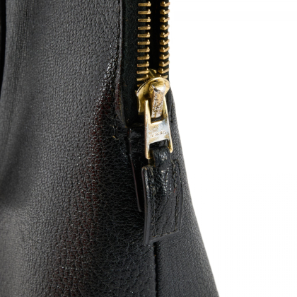 Material: Schwarzes Leder, goldene Hardware.