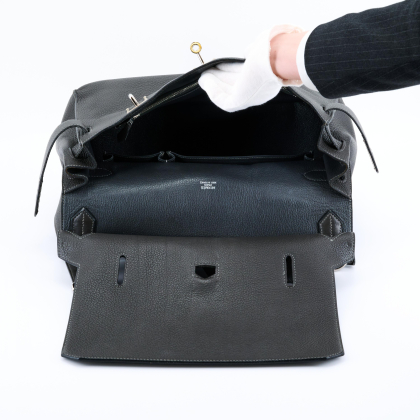 Material: Dunkeltaupe, Clemence-Leder, palladiumfarbene Hardware.