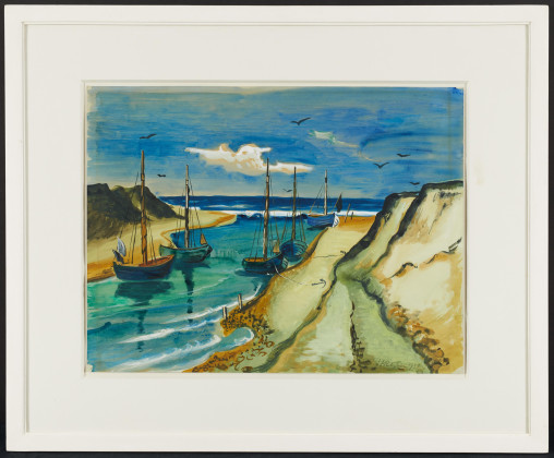 Hermann Max Pechstein Deutschland Expressionismus Die Brücke Moderne Kunst Unikate 1930er Rahmen Hafen Papierarbeit Gouache Meer