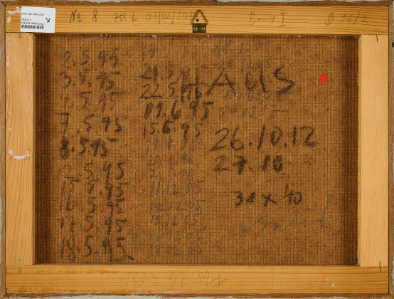 Das Gemälde hat die WVZ.-Nr. WV 2012-15. Es ist eine Übermalung des Werkes "28 Tage" (WVZ.-Nr. WV 1996-39). Verso listete der Künstler die Daten auf, an denen er an den beiden Werken arbeitete. Der Rahmen wurde vom Künstler bemalt. Mit beiliegender ausgedruckter E-Mail der Galerie Utermann, Dortmund.