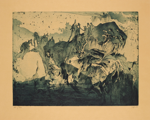 Technik: Mappe mit 17 Radierungen auf verschiedenfarbigem Velin. Mit Impressum und Deckblatt. In der originalen Kassette.
