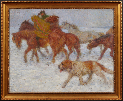 Hugo Friedrich Hartmann Deutschland Dresdener Schule 1.H. 20.Jh. Gemälde Rahmen Tiere Malerei Pferde