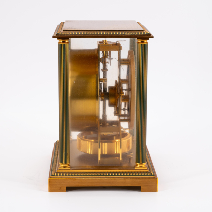 Beschreibung: Gehäuse mit Säulen. Zifferblatt mit römischen Stunden und arabischer Minuterie.