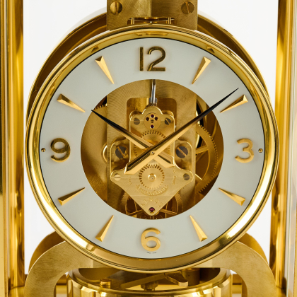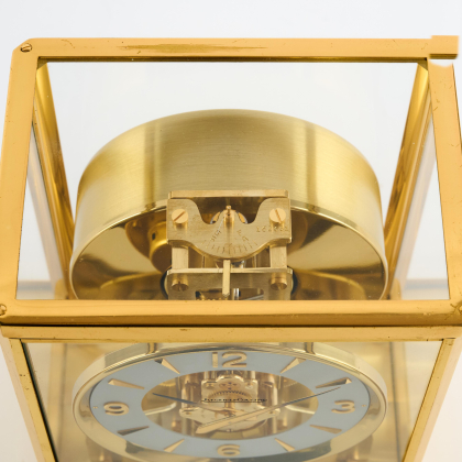 Bez. Jaeger-LeCoultre Atmos Swiss Made. Auf dem Boden Caliber 526-5. Oben auf Werk Gehäuse-Nr.162331.