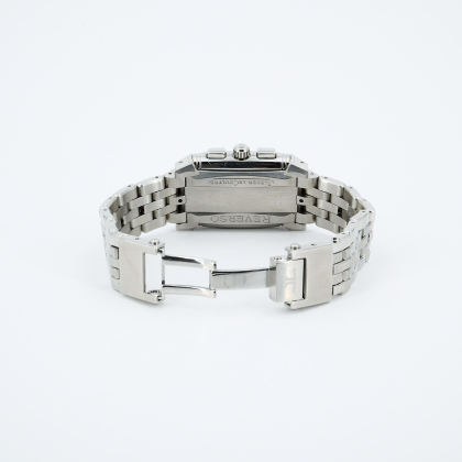 Beschreibung: 3-Zeiger-Armbanduhr mit Datumsanzeige bei "6" Uhr und Chronograph auf der Rückseite.