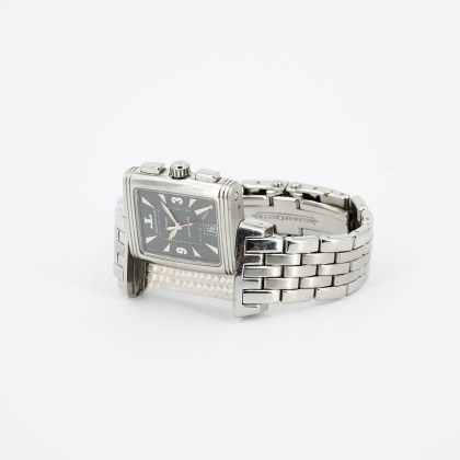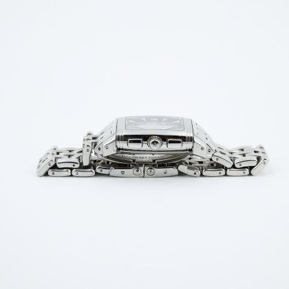 Gehäuse/Armband: Stahl, Gliederarmband mit Doppelfaltschließe, Zffbl. schwarz, Zeiger silbern, Indizes weiß, Leuchtmasse.
