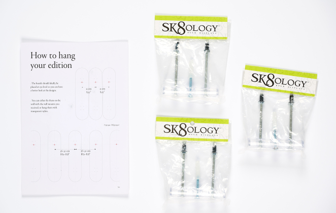 Technik: Jeweils: Farboffset auf Skateboard-Deck. Mit Wandaufhängung und Tragetasche.