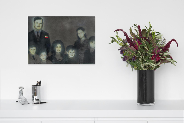 Jeffar Khaldi Zeitgenössische Kunst Unikate 2010er Rahmen (35 x 47cm) Porträt Papierarbeit Mischtechnik Familien