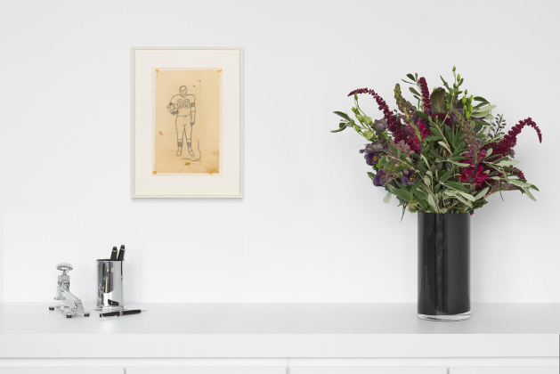 John Wesley USA Comic Pop Art Zeitgenössische Kunst Unikate 1960er Rahmen Sport Papierarbeit Mischtechnik Mann
