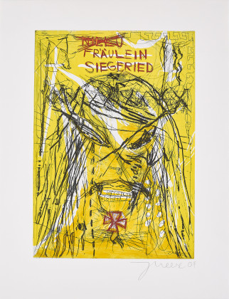 Los 46 | Jonathan Meese | Fräulein Siegfried, die Scharfmacherin des ordensburg-beschneienden Orchideengebietes "Gottbart", der Fraechse trommelnd, Eldoradon belutschend (Serie 10)