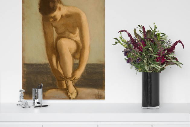 Blatt minimal gewellt. Reste alter Montierung und Stecknadellöcher in den Randbereichen. Vereinzelt minimale Bereibungen der Oberfläche. Verso Arbeitsspuren. Ansonsten guter Zustand.