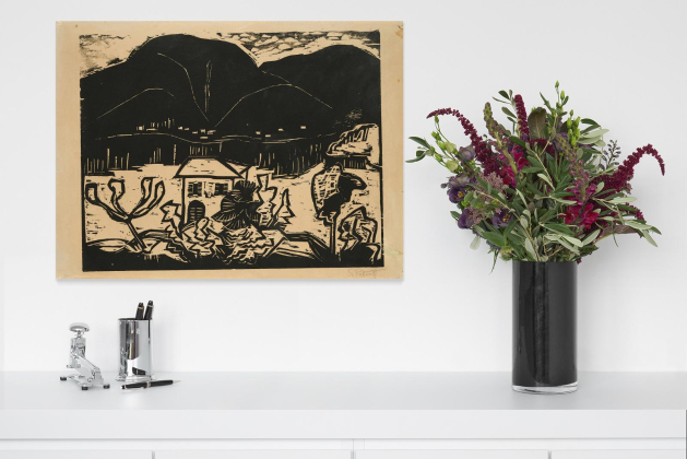Der Künstler fertigte den Druckstock 1930 für die Auflage eines Farbholzschnitts, die dann aber nie umgesetzt wurde. Gedruckt wurde dann als Holzschnitt 1960 als Jahresgabe für die Karl-Hofer-Gesellschaft, Berlin. Aus unbekannter Auflagenhöhe.