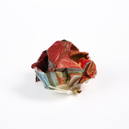 Technik: Sprühfarbe auf zerknülltem Papier. In Plexiglasbox.