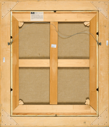 An den pastosen Stellen anhaftende Reste von Verpackungsmaterial (Atelierspuren?). Minimale Staubablagerungen. Ansonsten sehr guter Zustand. Im Rahmen beschrieben.
