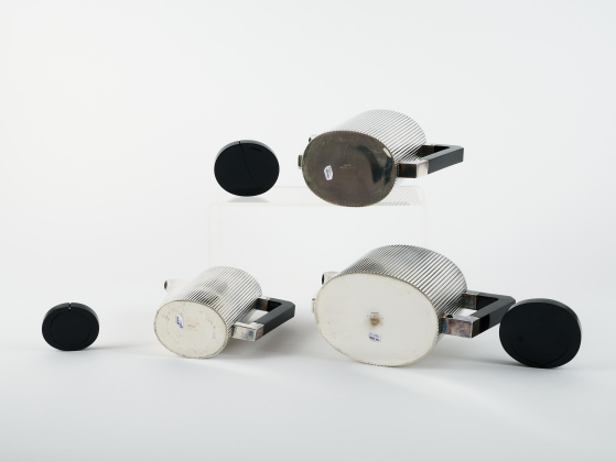 oder Mokkakanne, Sahnekännchen & Zuckerdose auf kleinem Tablett. Der jeweils ovale Korpus