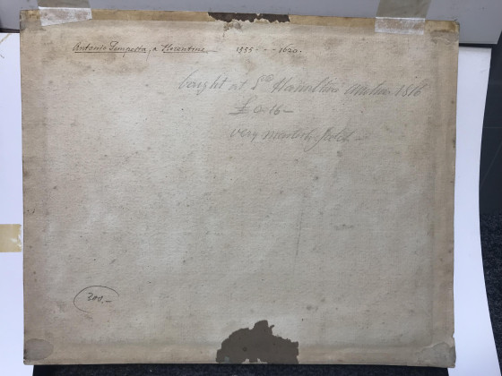Alte Zuschreibung an Antonio Tempesta, sowie Kaufnotiz von 1816.