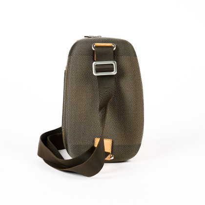 Material: Brauner Canvas und Leder, silberfarbene Metallelemente.