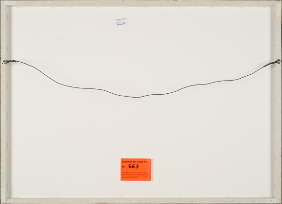Herstellungsbedingt minimal gewellt und minimal beriebene Oberfläche. Minimale braune Flecken in der oberen linken Ecke im hellen Bereich. Verso montiert. Ansonsten sehr guter Zustand. Das Werk wurde für die Katalogbeschreibung nicht ausgerahmt.
