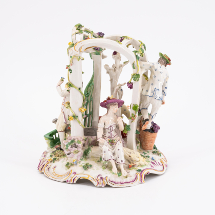 FIGURENGRUPPE UNTER GARTENLAUBE ALS ALLEGORIE DER VIER JAHRESZEITEN.