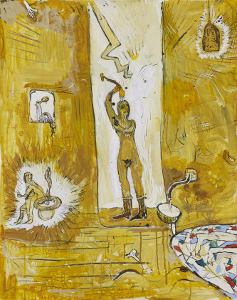 Technik: Gouache, Acryl und Tusche auf Leinwand.