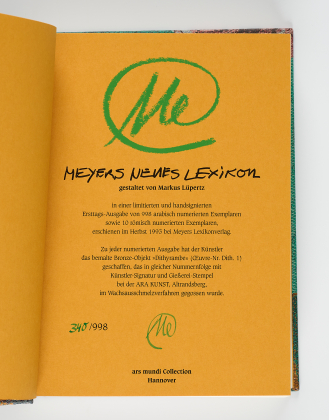 Los 26 | Markus Lüpertz | Buchstütze "Dithyrambe" und Künstlerausgabe Meyer Neues Lexikon