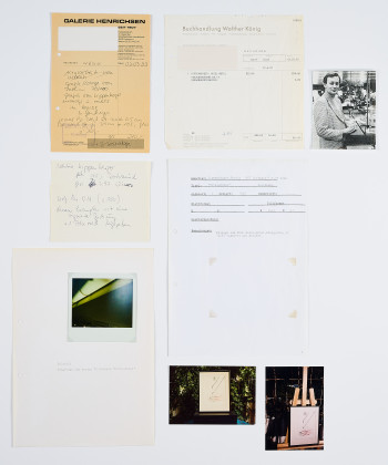 Die Zeichnung bildet zusammen mit dem Polaroid die Beilage zu der Vorzugsausgabe des Künstlerbuchs "Hotel-Hotel", das 1992 vom Verlag Walther König, Köln, herausgegeben wurde. Es handelt sich hier um die Exemplarnummer 19/30. Das Künstlerbuch und das Polaroid liegen der Zeichnung bei.