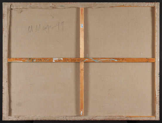 Bezeichnung: Signiert und datiert verso oben links: M Meyer 99. Auf dem Keilrahmen nochmals signiert und datiert sowie mit Werkangaben versehen.