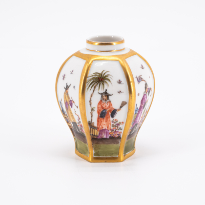 DECKELHUMPEN UND TEEGEFÄß MIT CHINOISERIEN.