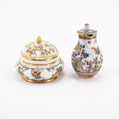 Los 5 | Meissen | Dose & kleines Kännchen mit überdekoriertem Vogel- Fels-Motiv