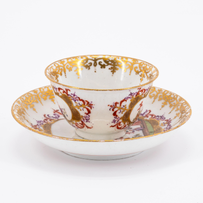 KOPPCHEN UND UNTERTASSE MIT CHINOISERIEN.