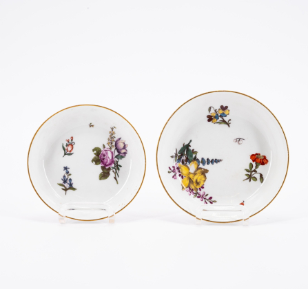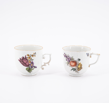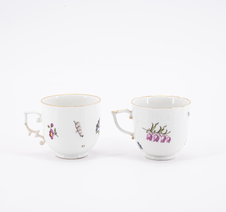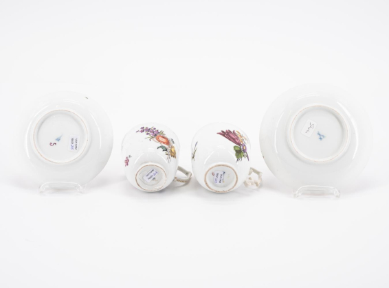 Los 7 | Meissen | Milchkännchen und zwei Tassen & Untertassen mit Holzschnittblumen