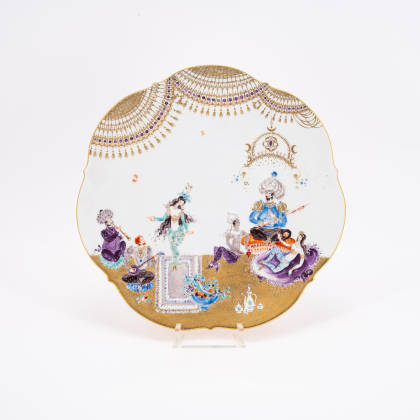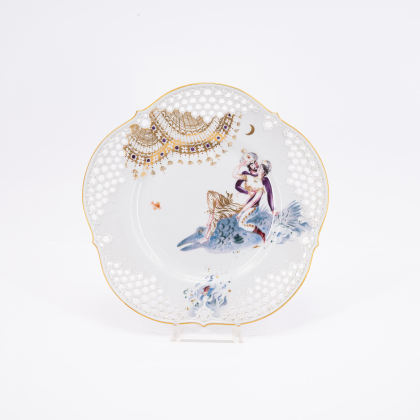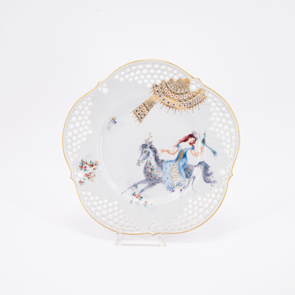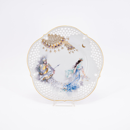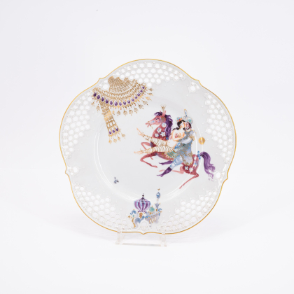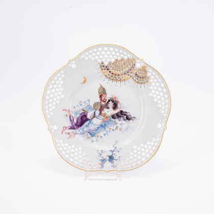 Los 85 | Meissen | Sechs große Teller mit Durchbruchtechnik, eine Wandplatte und ein Porzellanbild mit Dekor "1001-Nacht"