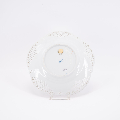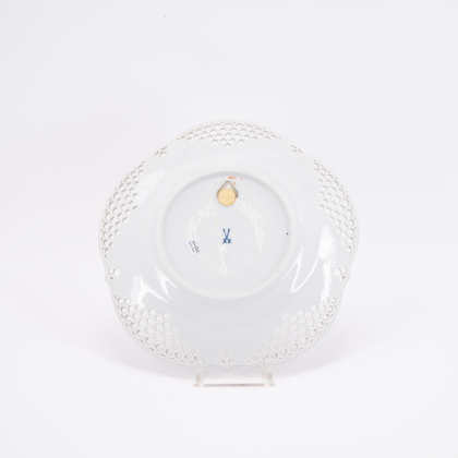 SECHS GROßE TELLER MIT DURCHBRUCHTECHNIK, EINE WANDPLATTE UND EIN PORZELLANBILD MIT DEKOR "1001-NACHT".