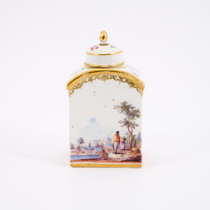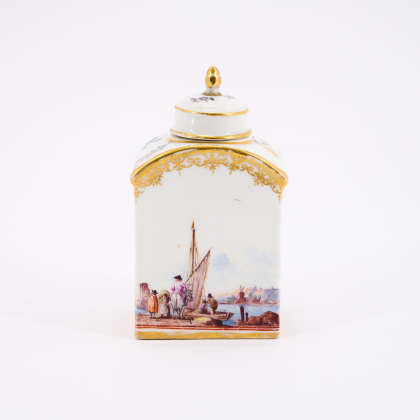Los 106 | Meissen | Teedose mit umlaufender Flusslandschaft und Kauffahrteiszenen