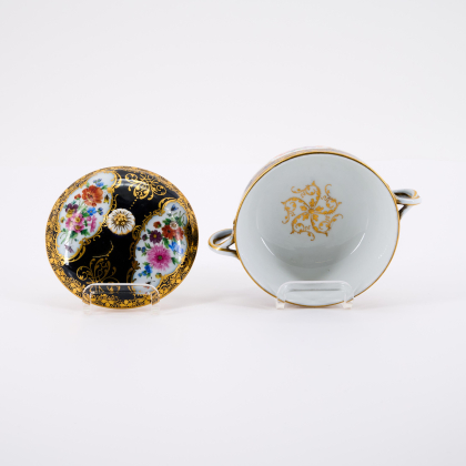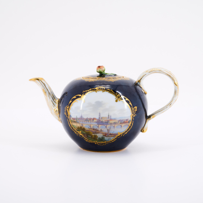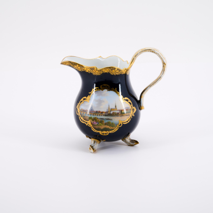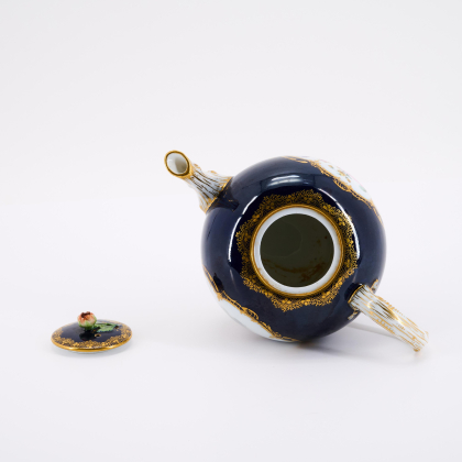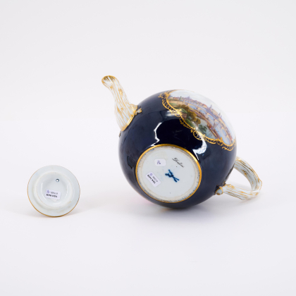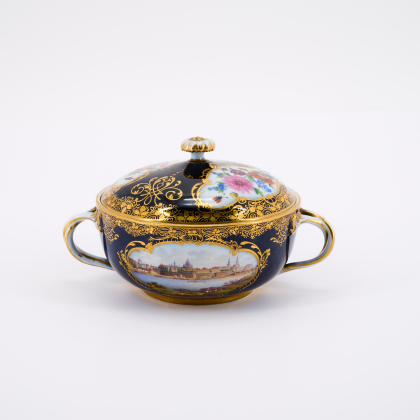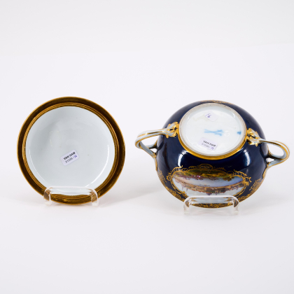 Technik: Porzellan, Kobaltblaufond, polychrom und gold staffiert.
