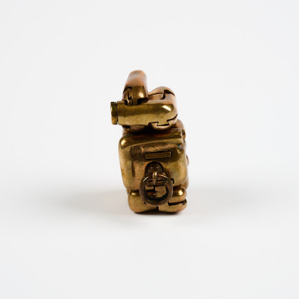 Technik: Puzzlefigur aus Kupferberylliumbronze mit Farbstein als Schmuckanhänger.