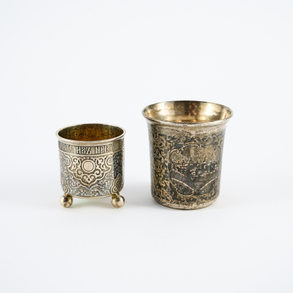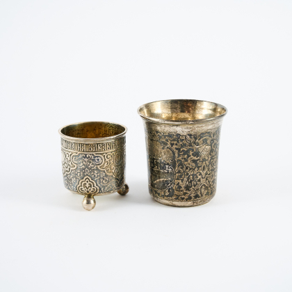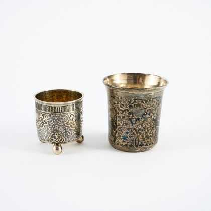 Technik: Silber, tlw. mit Innen- und Teilvergoldung bzw. Niellodekor.