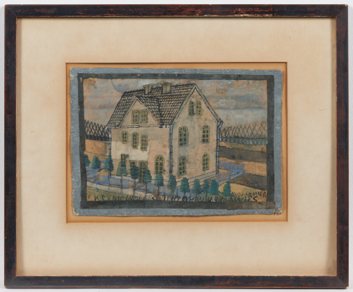 Nikifor Polen Nachkriegskunst Unikate Rahmen. Im Rahmen beschrieben Gebäude Papierarbeit Collage Haus