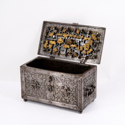Eine vergleichbar fein geätzte Truhe in der Sammlung Charles Boucaud, Auktion Fraysse & Associés, 8.2.2011, Los 216.