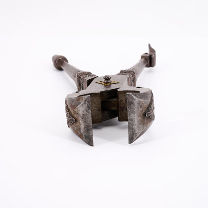Technik: Eisen geschmiedet, graviert und geschnitten. Messing.