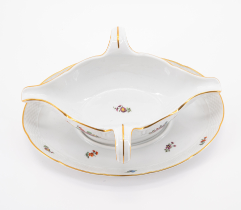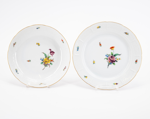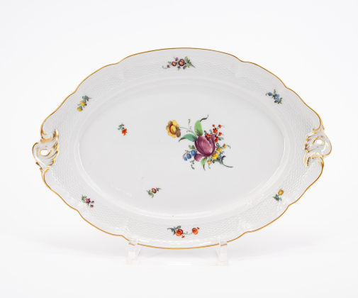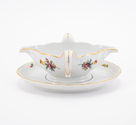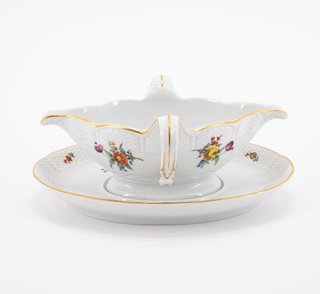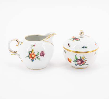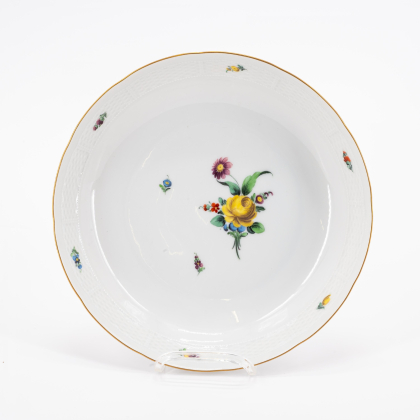 Los 122 | Nymphenburg | 59 Teile aus einem Speiseservice mit Blumendekor und Korbrelief