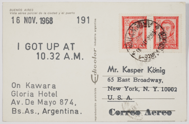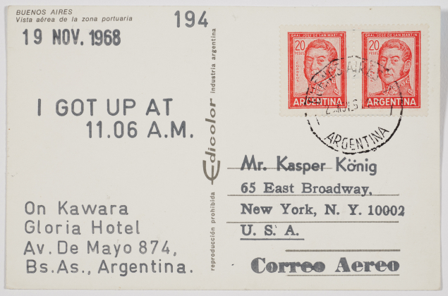 - Für die Postkarten Serie an Kasper König sendete Kawara jeden Tag zwei Postkarten