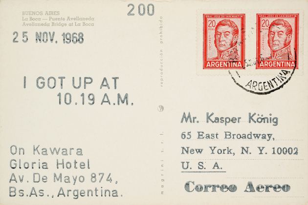 sowie dem Empfänger Kasper König, New York. Die Karten stammen von den Tagen 24., 25. und