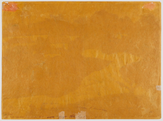 Technik: Aquarell und Farbkreide auf gelbem Papier.